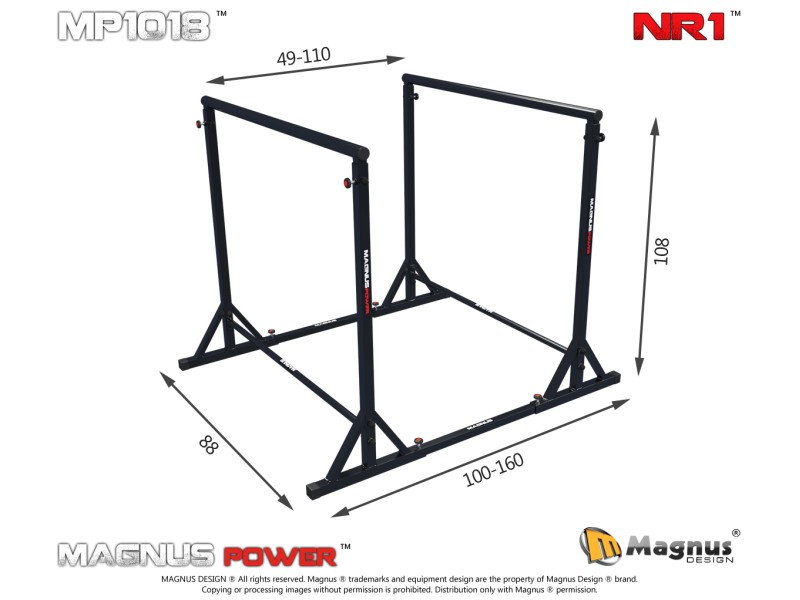 Návrháři z MAGNUS ® DESIGN vyloučili jakákoli rizika díky nastavitelné integrované konstrukci. Magnus ® Power MP1018 jsou první a jediná stabilní bradla, díky kterým můžete provádět celou škálu cviků a přitom 100% bezpečně.